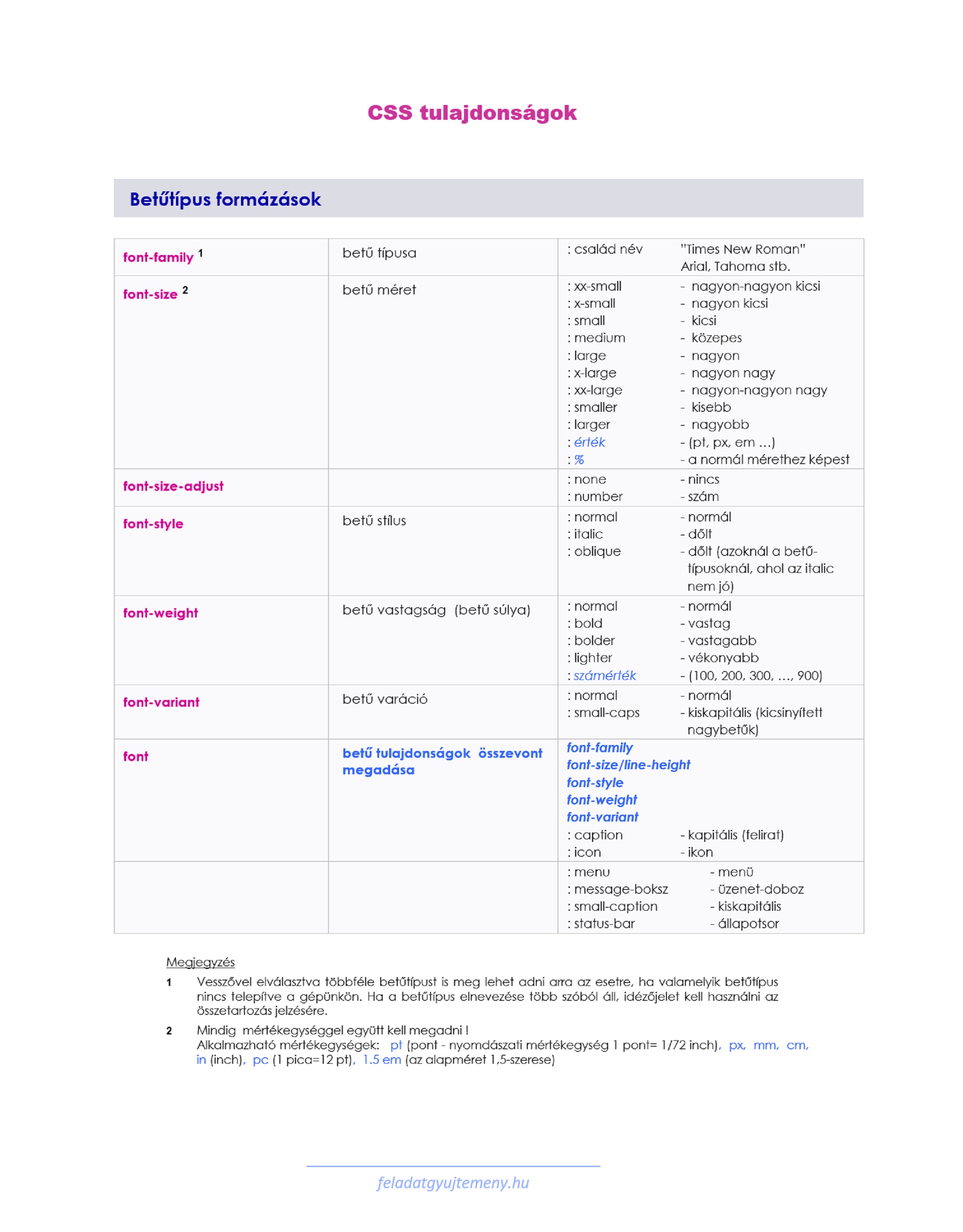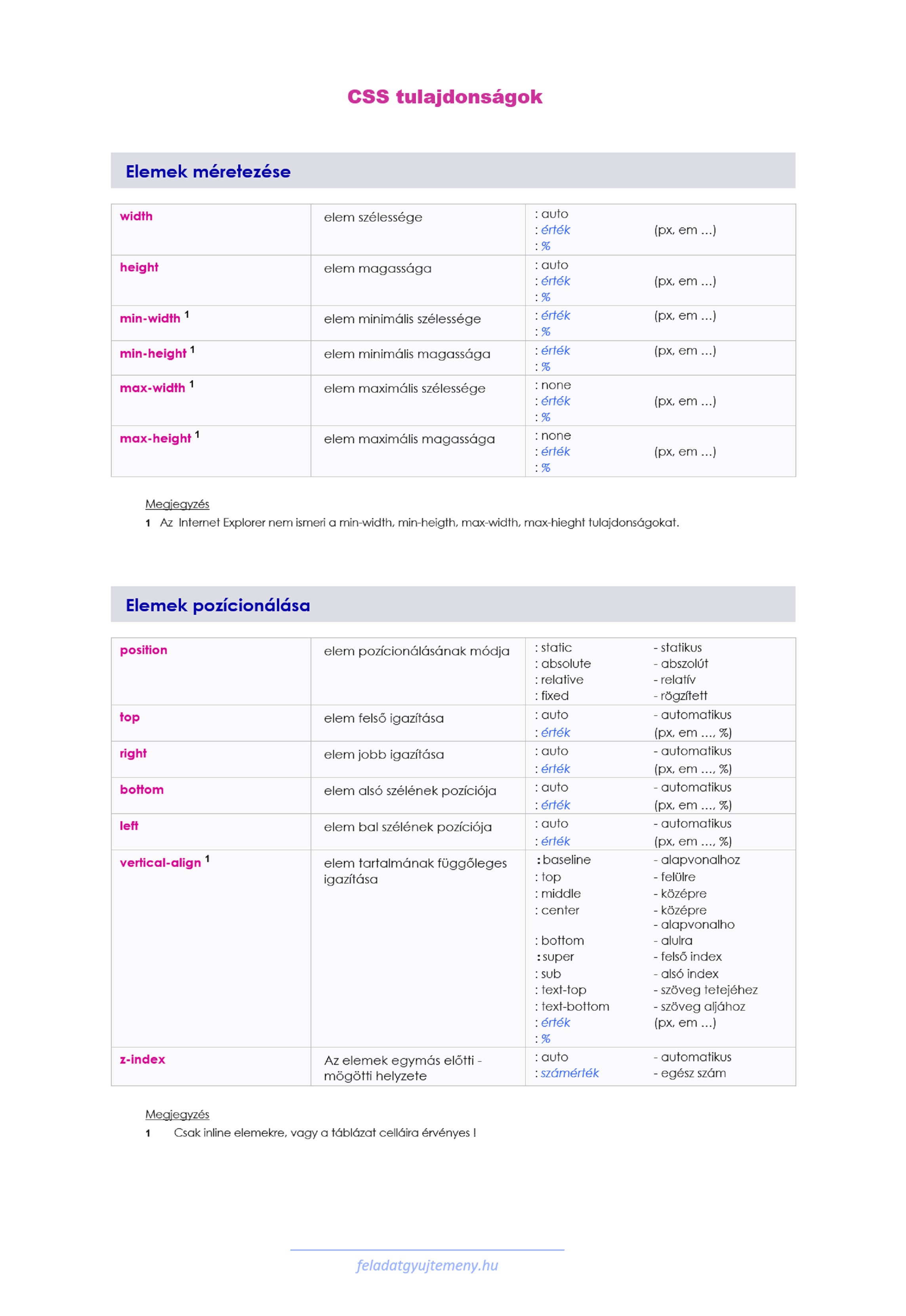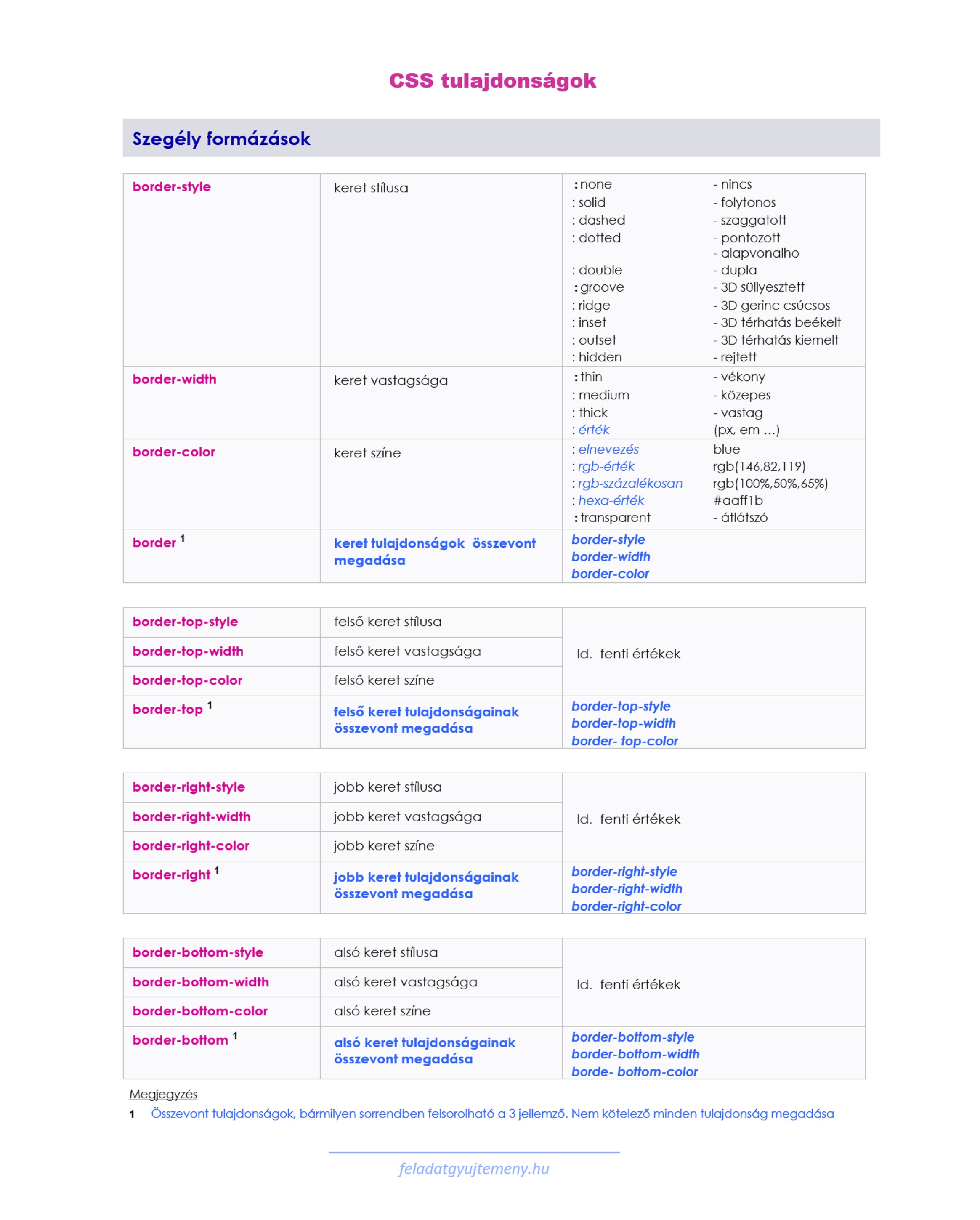 Háttér formázások Betűformázás Szövegformázás Szegély formázások Elemek méretezése, pozícionálása